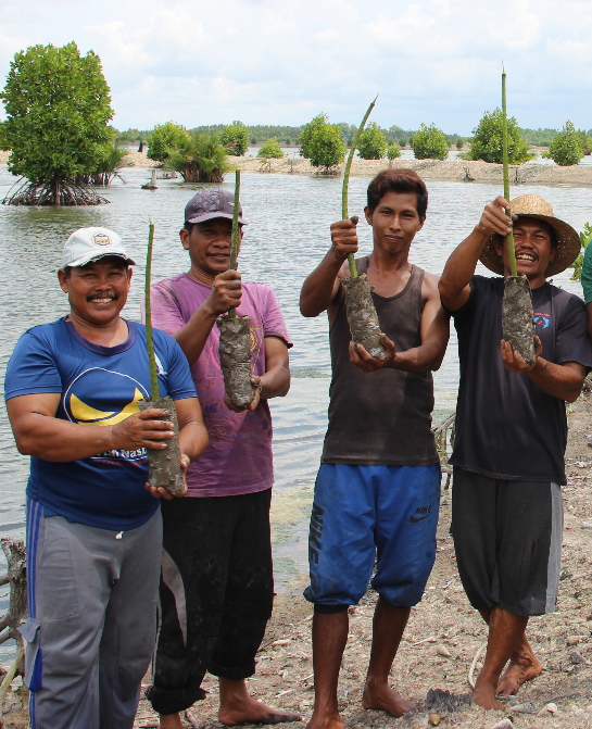 Our farmers ready to plant mangroves around our ponds